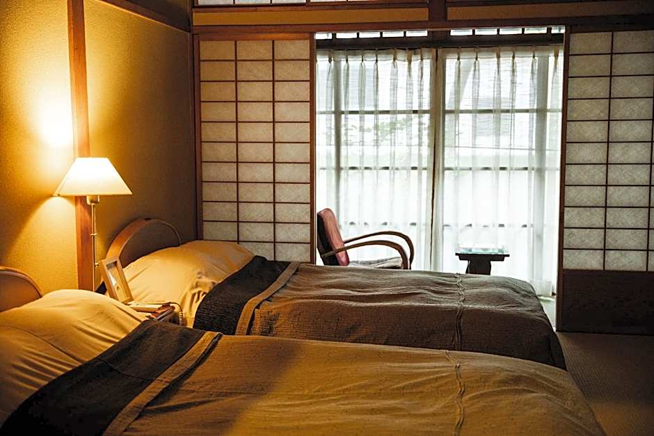 Features shoji paper screens, tatami (woven-straw) flooring and Western beds. This air-conditioned spacious room includes a fridge and tea maker. Each has an attached toilet, and bathing facilities are shared.